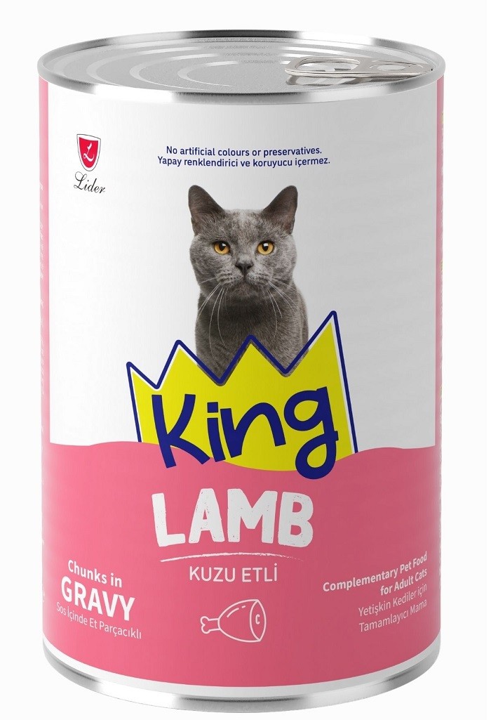 King Sos İçinde Et Parçacıklı Kuzu Etli Yetişkin Kedi Konserve 400Gr