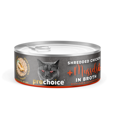 Prochoice Shredded, Tahılsız, Hipoalerjenik, Tiftiklenmiş Tavuk Etli Ve Midyeli Yaş Kedi Maması 70 gr