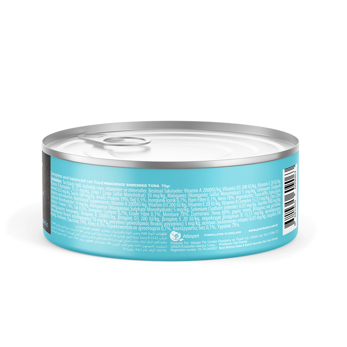 Prochoice Shredded, Tahılsız, Hipoalerjenik, Tiftiklenmiş Tuna Balıklı Yaş Kedi Maması 70 gr