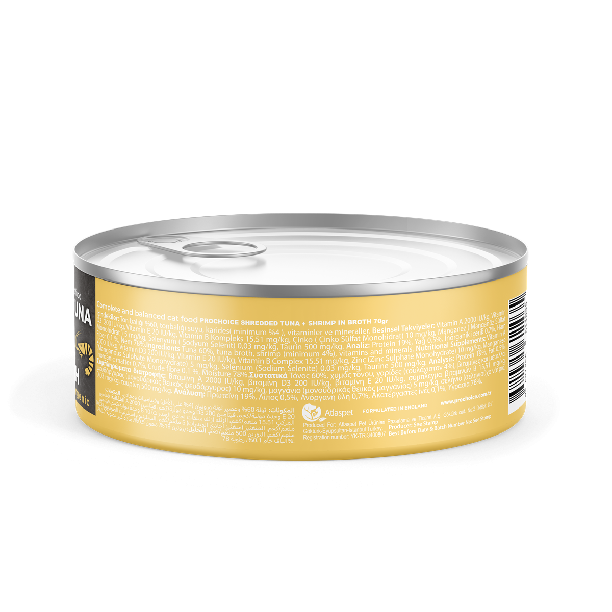 Prochoice Tahılsız, Hipoalerjenik, Tiftiklenmiş Tuna Balıklı & Karidesli Yaş Kedi Maması 70 gr
