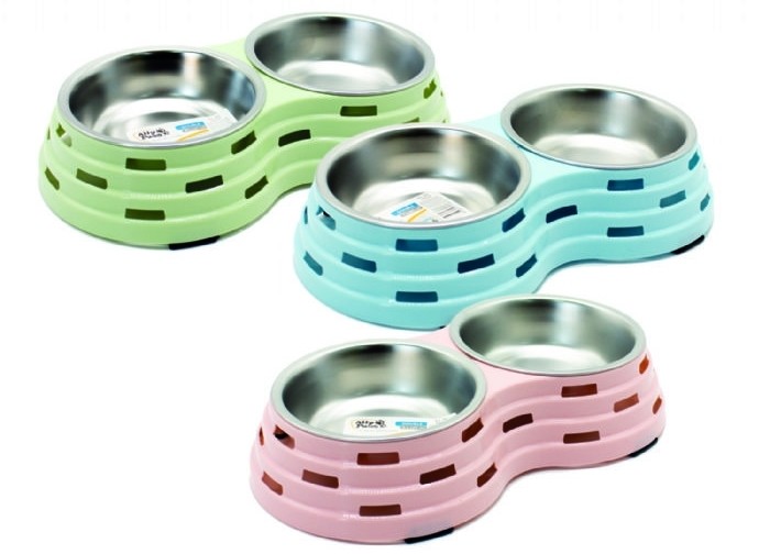 Kedi ve Köpek için Dışı Plastik içi Çelik Mama veya Su Kabı 2x370 ML