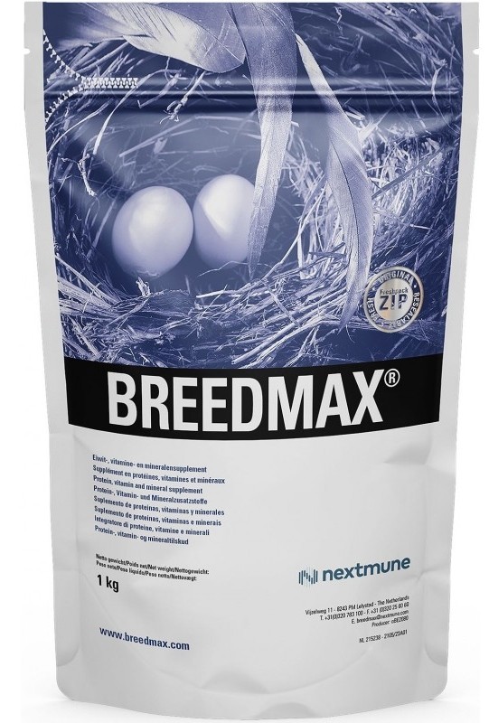 Breedmax, yumurtlama döneminde yumurtlama eksikliğinin önlenmesinde önemli bir rol oynayan iyi asimile edilmiş kalsiyum ve makul dozda kalsiyum/fosfor kombinasyonuna sahiptir. Vitaminlerin bileşimi büyük ölçüde kuşların ihtiyaçlarını karşılar.