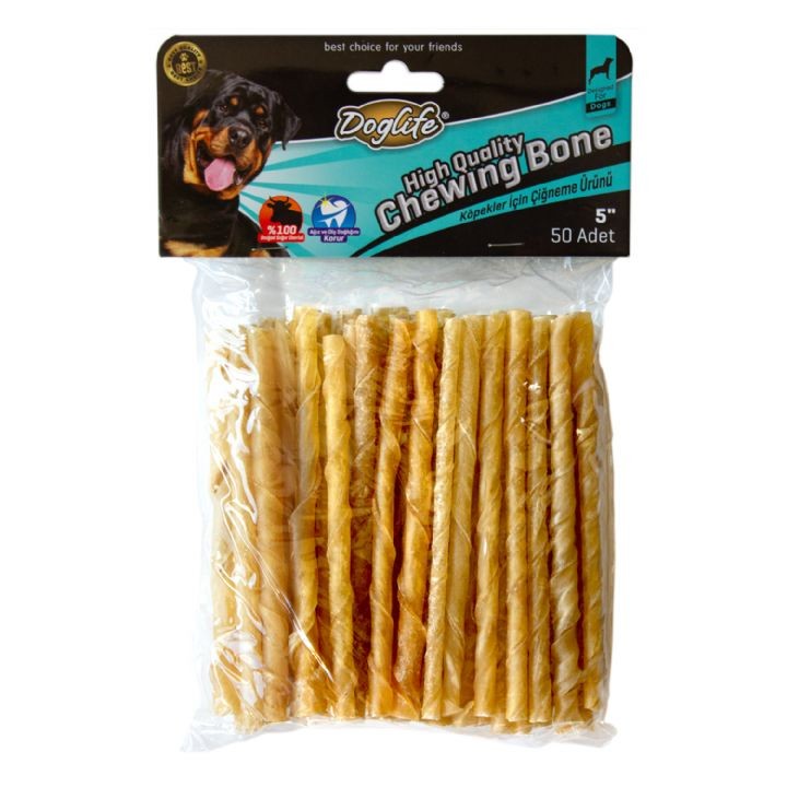 Örneğin Gimdog Mordimi Burgu Çubuk Kemik 15 cm 50’li paket, hem yavru hem yetişkin köpekler için doğal içerikli press deriden üretilmiş bir modeldir.