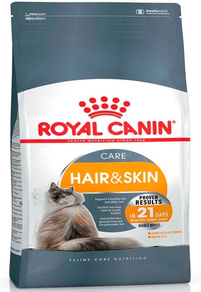 ROYAL CANIN® HAIR&SKIN CARE kedinizin deri sağlığını desteklemek ve tüylerinin dolgun, sağlıklı ve parlak olmasını sağlamak için formüle edilmiştir. Derisini desteklemeye ve beslemeye yardımcı olmak için bu formül, GLA, EPA ve DHA dahil olmak üzere omega-3 ve omega-6 yağ asitlerini içerir.