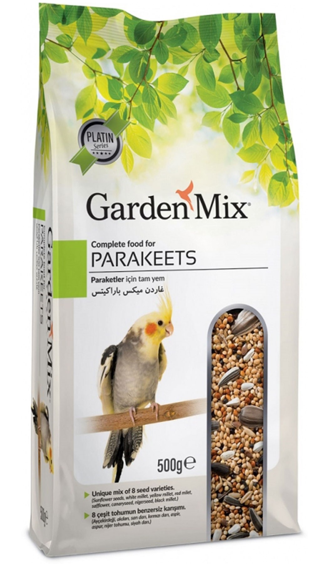 Gardenmix Platin Paraket Kuşu Yemi 500gr Marka: Gardenmix Ağırlık: 500gr Menşei: Türkiye Gardenmix kuş yemi; Çekirdek, sarı, ak, kırmızı, siyah darı, nijer tohumu, aspir vb tohumların birleşmesiyle oluşmaktadır. Kuş yemi; Doğal içeriğe sahiptir. Günde 1-2 kere kuşun boyutuna göre verilmesi önerilmektedir. Analiz Ham Selüloz %11,3, Ham Protein %10,5, Ham Yağ %9,5, Ham Kül %3