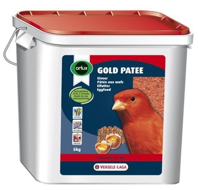 Versele-Laga Orlux Gold Patee Red nemli bir yumurta mamasıdır. Kanaryaların ve yaban kuşlarının kırmızı renginin canlı olmasını sağlar. İçeriğinde %100 saf ve doğal bal sayesinde besin değerleri artırılmıştır. Ayrıca içeriğinde bulunan lisin ve metiyonin tüylerin sağlıklı bir şekilde büyümesini garanti altına alır. Ayrıca mamanın içine tohumlar, sebzeler ve/veya meyveler katılarak verilebilir, ama bu durumda her gün mama yenilenmelidir.