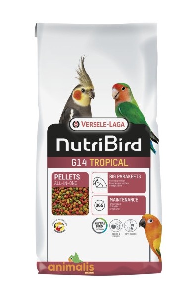 Versele Laga Nutribird G14 Tropical Papağanlar İçin Meyveli Pelet Yem tüm büyük papağanlar için ihtiyaç duydukları tüm besin maddeleri ve bilimsel olarak veterinerler tarafından onaylanmış kompozisyonu ile kuşlar tarafından tümümün artık olmadan tüketebileceği yüksek kaliteli pelet yemdir. Özenle seçilmiş tahıllar, tohumlar, meyveler ve yer fıstığının bir araya gelmesiyle ortaya çıkan Versele Laga Nutribird G14 Tropical Papağanlar İçin Meyveli Pelet Yem tüm ornitoloji parkları, papağan çiftlikleri, papağan üreticileri tarafından kullanılır. Veterinerler tarafından kullanılması tavsiye olur. Papağanlarınızda güvenle kullanabilirsiniz.