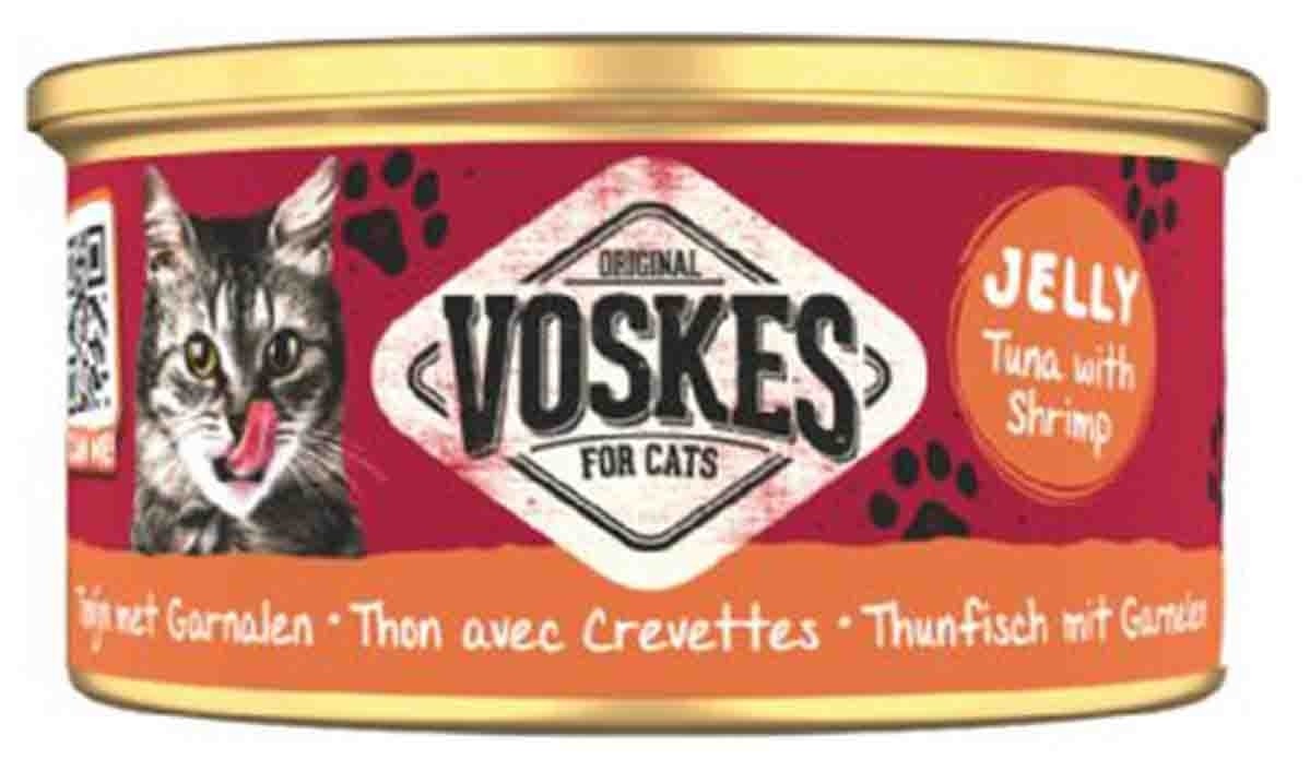 Voskes ton balıklı ve karidesli kedi konserve maması; ton balığı ve karides içeriğinden oluşan bir mamadır. Yetişkin kedilerin besin ihtiyaçlarına göre formüle edilmiştir. Protein kaynağı olarak ton balığı kullanılmıştır.