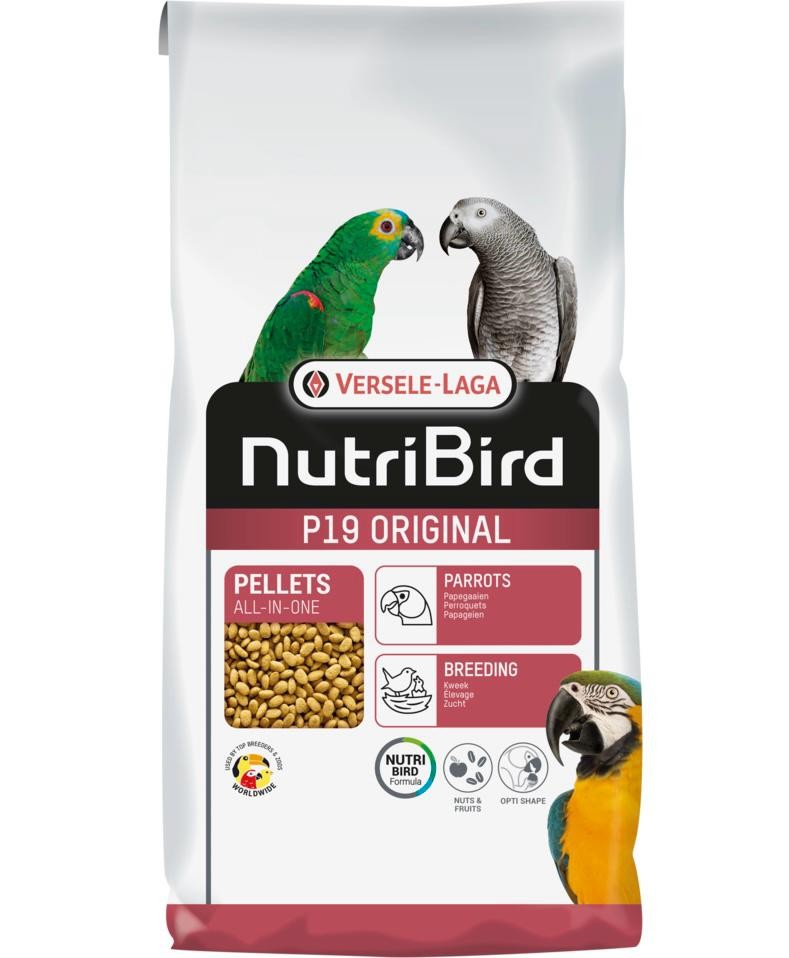 Versele Laga Nutribird P19 Original Üreyen Papağanlar İçin Meyveli Pelet Yem tüm büyük papağanlar için ihtiyaç duydukları tüm besin maddeleri ve bilimsel olarak veterinerler tarafından onaylanmış kompozisyonu ile kuşlar tarafından tümümün artık olmadan tüketebileceği yüksek kaliteli pelet yemdir. Versele Laga Nutribird P19 Original damızlık yani üreyen kuşlar için özel olarak geliştirilmiştir. Özenle seçilmiş tahıllar, tohumlar, meyveler ve yer fıstığının bir araya gelmesiyle ortaya çıkan Versele Laga Nutribird P19 Original Papağanlar İçin Meyveli Pelet Yem tüm ornitoloji parkları, papağan çiftlikleri, papağan üreticileri tarafından kullanılır. Veterinerler tarafından kullanılması tavsiye olur. Papağanlarınızda güvenle kullanabilirsiniz.